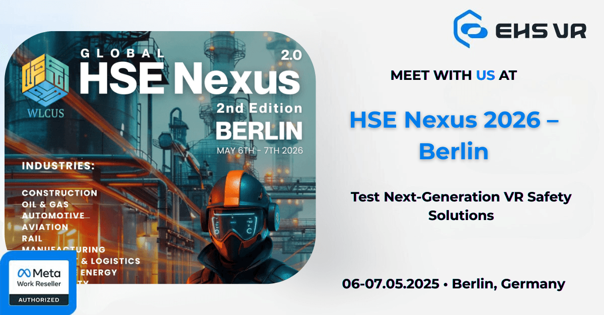 Join EHS VR at the Global HSE Nexus 2.0 in Berlin! We will demonstrate how immersive VR training enhances safety, hazard awareness, and employee engagement across high-risk industries. Test our latest applications and discover how VR can elevate your organisation’s safety standards.