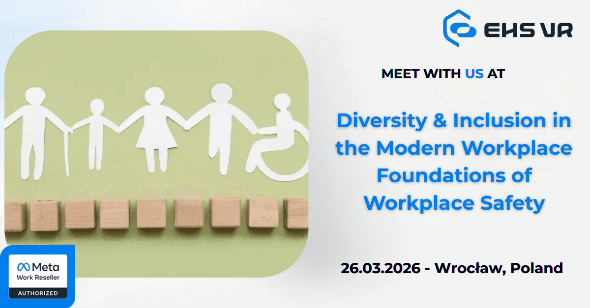 Spotkaj się z EHS VR na konferencji DSW „Różnorodność i inkluzywność w nowoczesnym miejscu pracy”. Porozmawiamy o tym, jak inkluzywna kultura bezpieczeństwa i dobrze zaprojektowane szkolenia mogą zwiększać zaangażowanie, wspierać podejmowanie decyzji i wzmacniać bezpieczne zachowania w pracy. Odwiedź nas, aby dowiedzieć się, jak szkolenia BHP w VR wspierają dostępne i powtarzalne doświadczenia edukacyjne dla zróżnicowanych zespołów.
