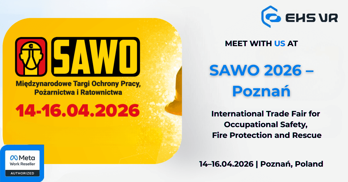 SAWO to międzynarodowe targi poświęcone bezpieczeństwu pracy, ochronie przeciwpożarowej oraz ratownictwu. Podczas SAWO 2026 na Międzynarodowych Targach Poznańskich, EHS VR zaprezentuje rozwiązania szkoleniowe BHP nowej generacji w technologii VR, umożliwiając odwiedzającym doświadczenie immersyjnych symulacji z zakresu bezpieczeństwa, reagowania kryzysowego oraz szkoleń zawodowych.